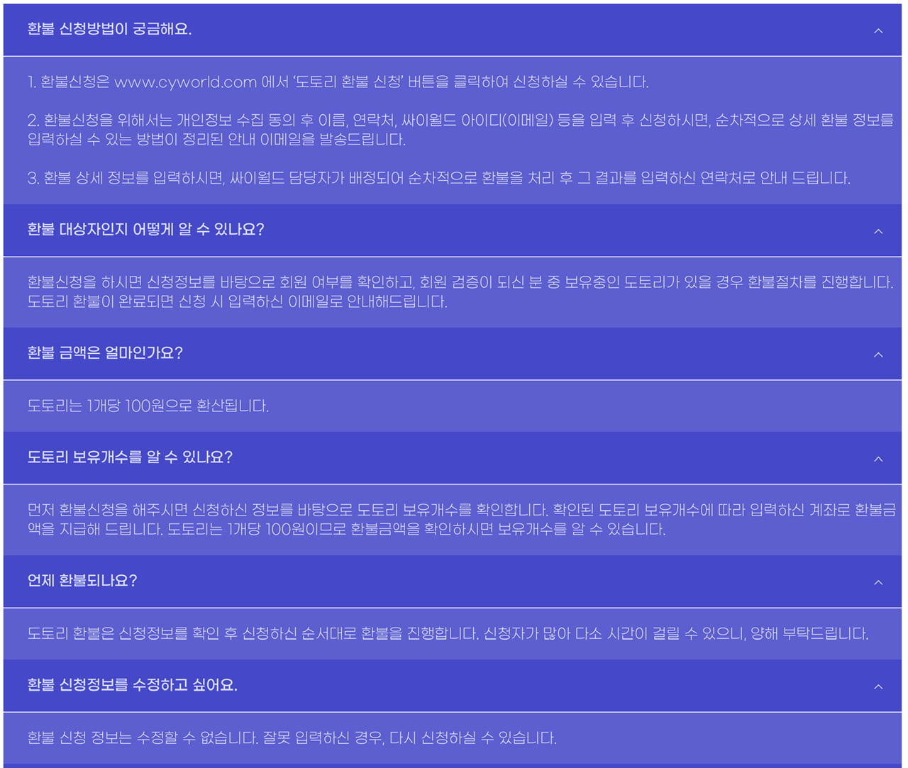 싸이월드 환불방법