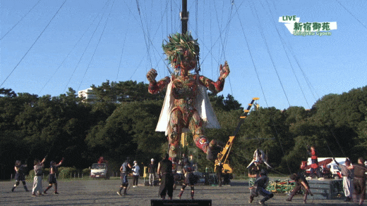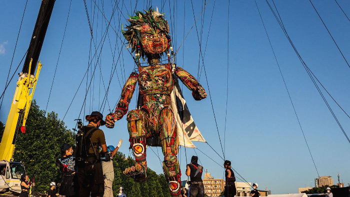 도쿄올림픽을 축하하기 위해 제작한 이벤트용 작품인 높이 10m 거대 꼭두각시 인형 '못 코'가 등장했는데 '기괴하다' , '사탄의 인형 처키를 닮았다'극 혹평을 들었습니다.