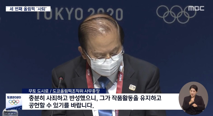 예술팀 총감독이었던 사사키 히로시 총감독은 일본 인기 탤런트인 와타나베 나오미를 '올림 핏 구' 돼지로 변신시키자는 내용의 개막식 연출안을 팀 내 메신저에 공유해 여성 외모 비하 발언으로 사의를 표했습니다.