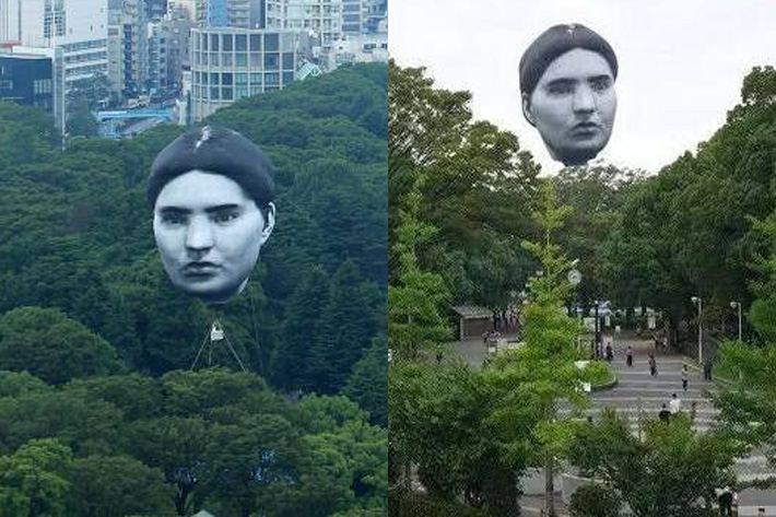 도쿄 시부야 지역 전역에 일본인 작가 3명으로 이뤄진 예술팀이 건물 6-7층 높이까지 떠오른 무표정한 얼굴 모양의 열기구를 만들어 띄우면서 시민들을 놀라게 했습니다.