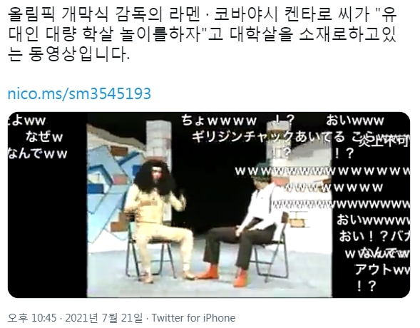 계. 폐막식을 담당하는 감독팀에서 '쇼 디렉터'로 활동하던 고바야시 켄타로는 과거 개그 콩트 영상이 논란이 되었습니다.