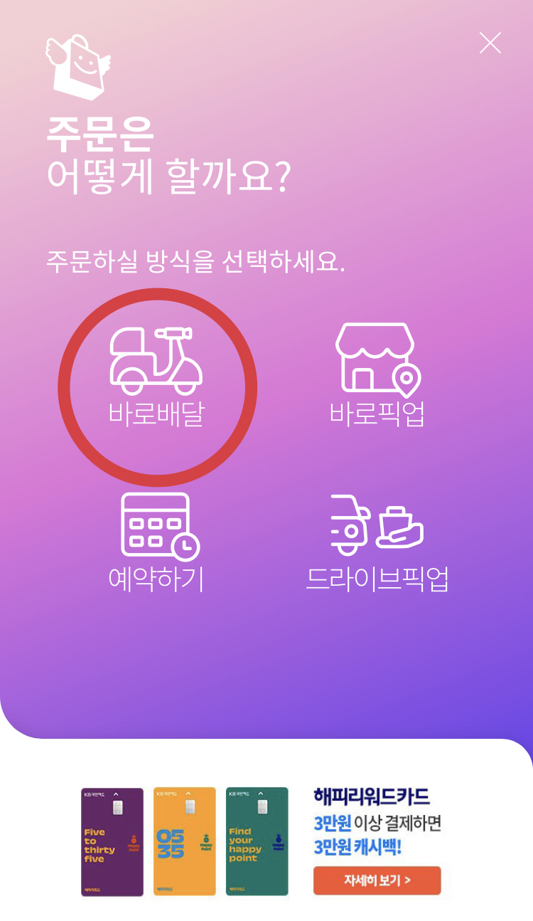 3) 바로 배달로 저는 선택했어요.