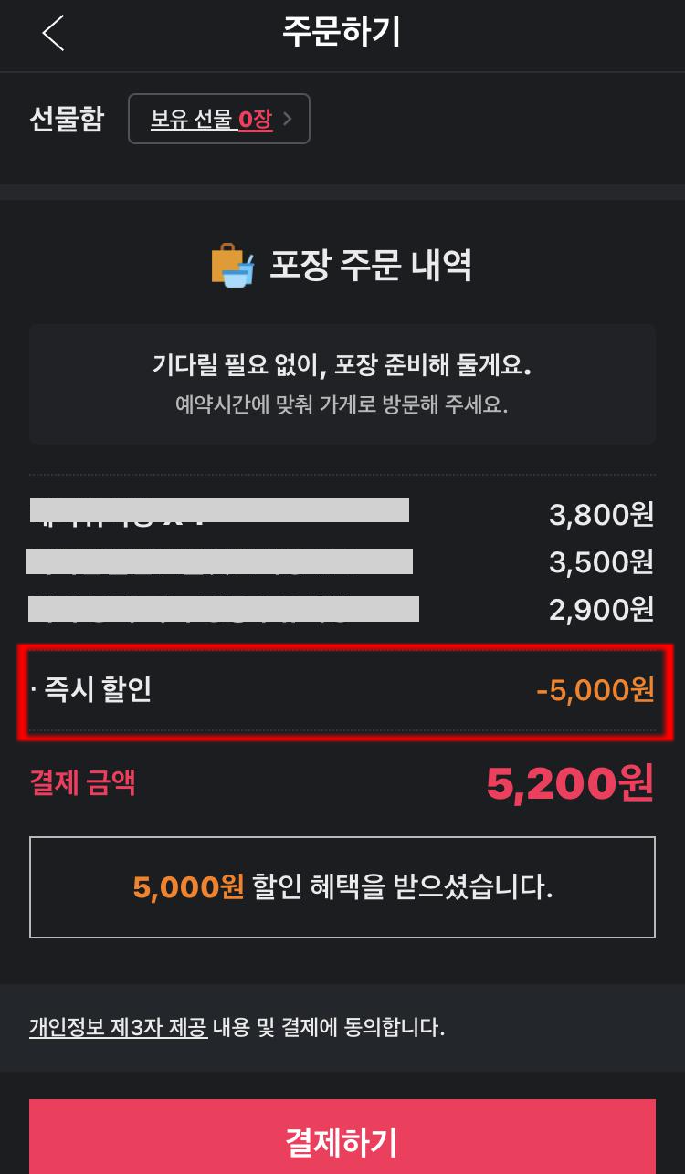 대신 현재는 포장만 가능하다는 점.. 배달만 할인될 때도 있어요.