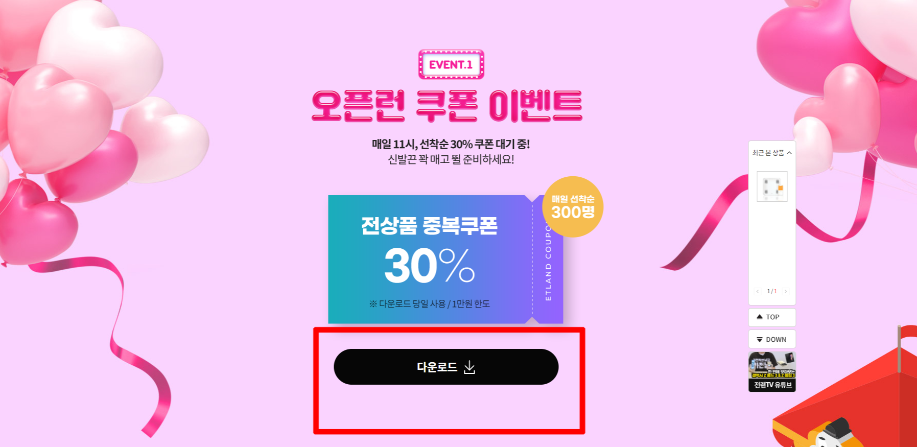3) 쿠폰을 다운로드한 후 상품을 고르세요