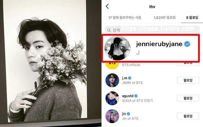 방탄소년단 공식 계정과 멤버들 6명이 전부였던 뷔의 팔로잉 목록에 7일 새벽, 블랙핑크 제니가 추가된 것입니다.