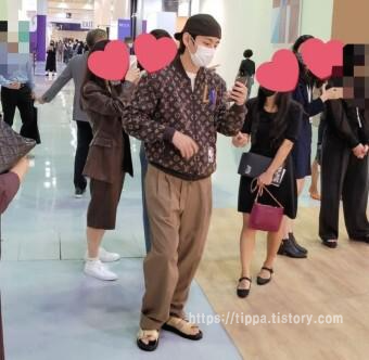 행사장에서 뷔는 상당히 자유롭게 돌아다니는 모습을 보였으며, 자신이 누구인지 숨기지도 않고 사진도 찍어주며 팬들과 소통하는 모습을 보였다고 합니다.