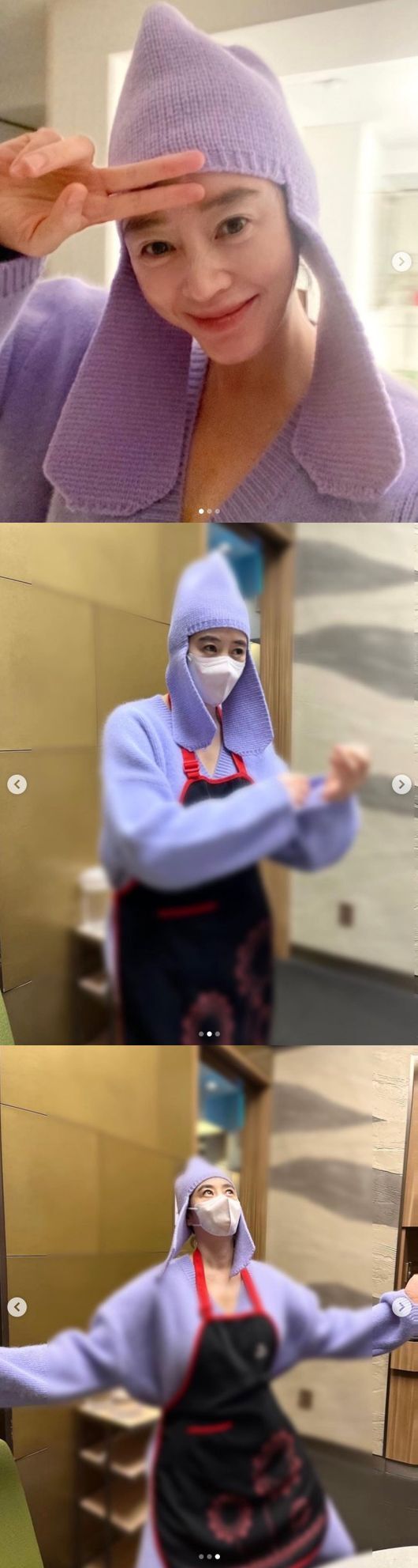 배우 김혜수는 14일 오후 자신의 SNS에 별다른 멘트 없이 보라색 하트 모양의 이모티콘과 함께 사진 3장을 게재하며 유쾌한 일상을 공유해 웃음을 자아냈습니다.