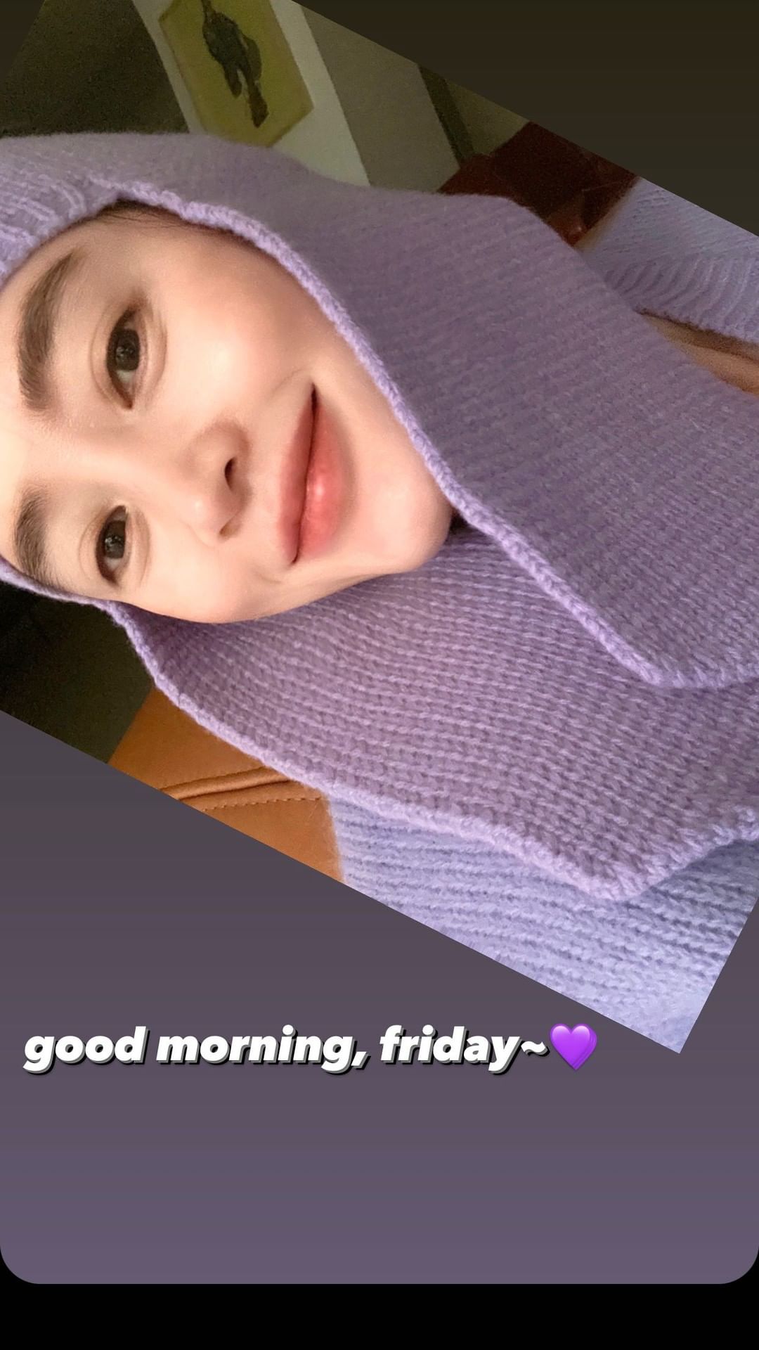 인스타그램 스토리에 "good morning, friday♥"라는 글과 함께 사진을 게재했습니다.