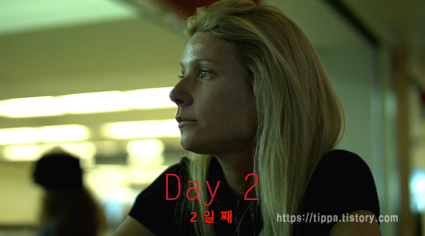 영화는 어둠 속에서 들리는 기침 소리로 시작하며, 홍콩 출장을 다녀온 베스(귀네스 팰트로)가 오한과 고열, 식은땀을 흘리며 발작 후 사망하는 장면이 등장합니다.