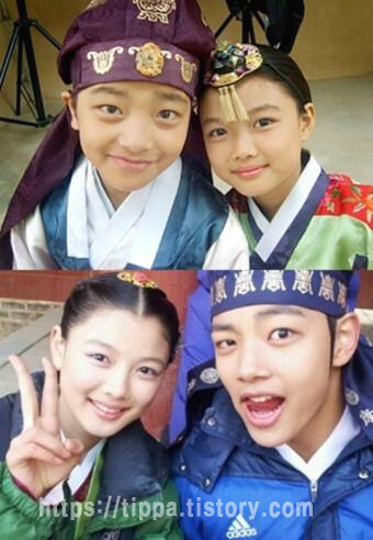 김유정은 드라마 ‘일지매’ 출연 당시 여진구와 귀엽고 앳된 얼굴을 하고 있습니다.
