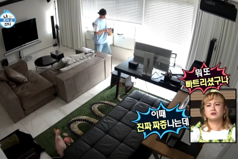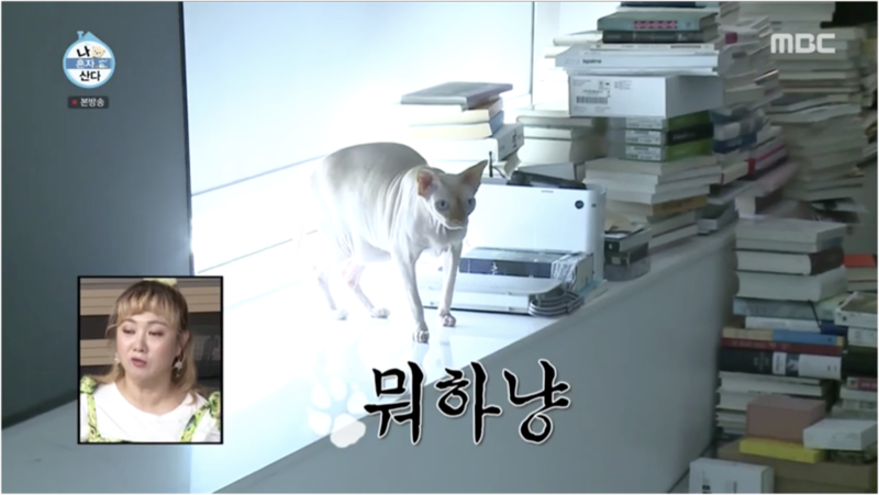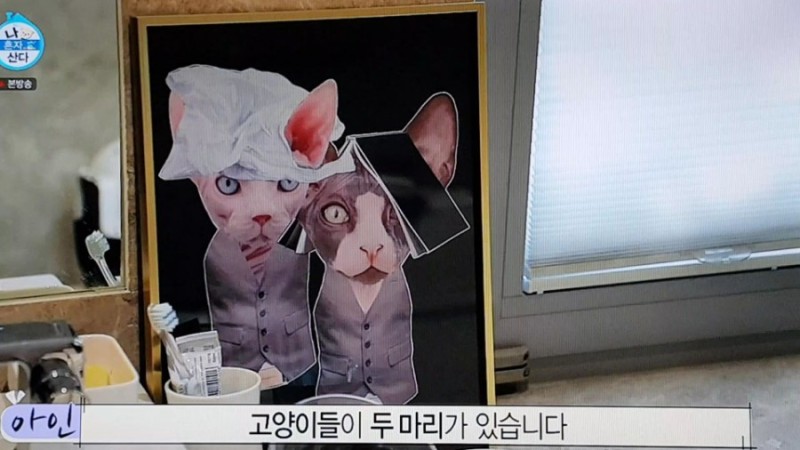 스핑크스 고양이 도비, 장비 2마리를 키우고 있으며, 3층 침실 옆 욕실은 유아인 전용이며, 2층은 고양이들 전용 화장실입니다.
