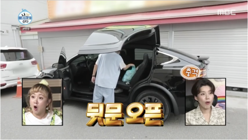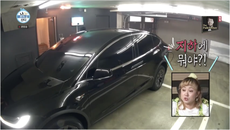지하 1층 주차장에는 화제가 된 유아인의 테슬라 자동차가 주차되어있습니다.