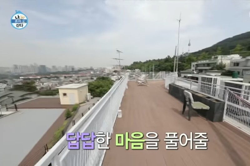 그리고 침실에서 이어져있는 계단을 오르면 루프탑이 나오며 힐링할 수 있는 공간이 나왔으며 유아인은 여기서 낮잠을 자는 모습을 보이기도 했습니다.