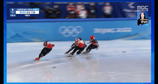 하지만 심판진은 비디오 판독을 통해 황대헌이 1위 자리를 뺏는 과정에서 레인 변경을 늦게 했다며 반칙으로 인정해 실격 처리했으며, 중국의 런쯔웨이와 리원룽에게 결승 진출권을 부여했습니다.