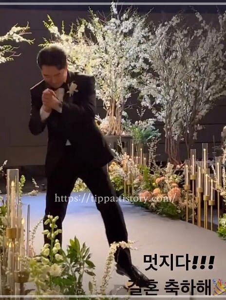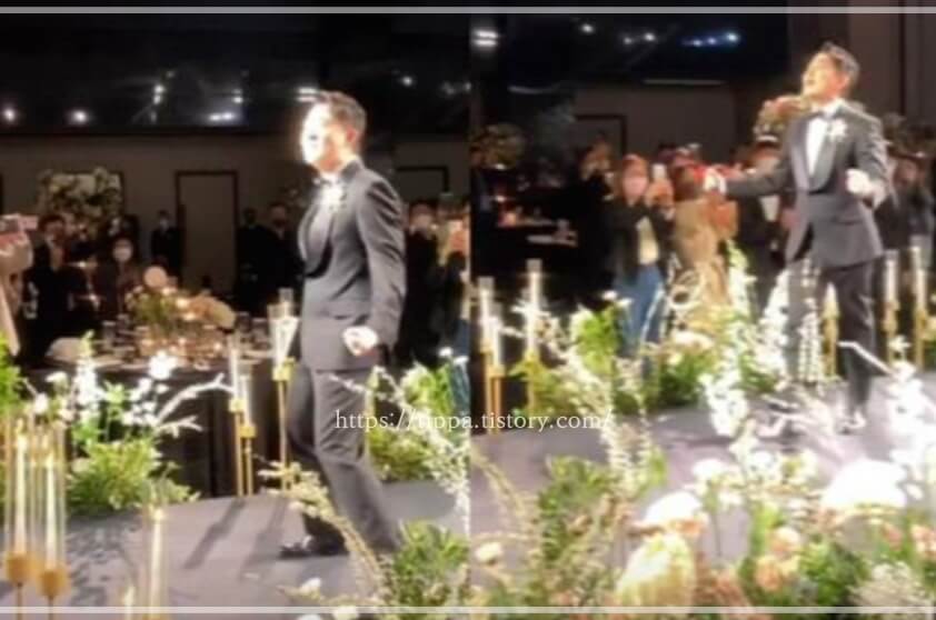 그리고 붐은 턱시도를 입고 버진로드를 걸으면서도 흥에 신나 몸을 꿀렁이는 웨이브 춤으로 현장을 초토화시켰습니다.