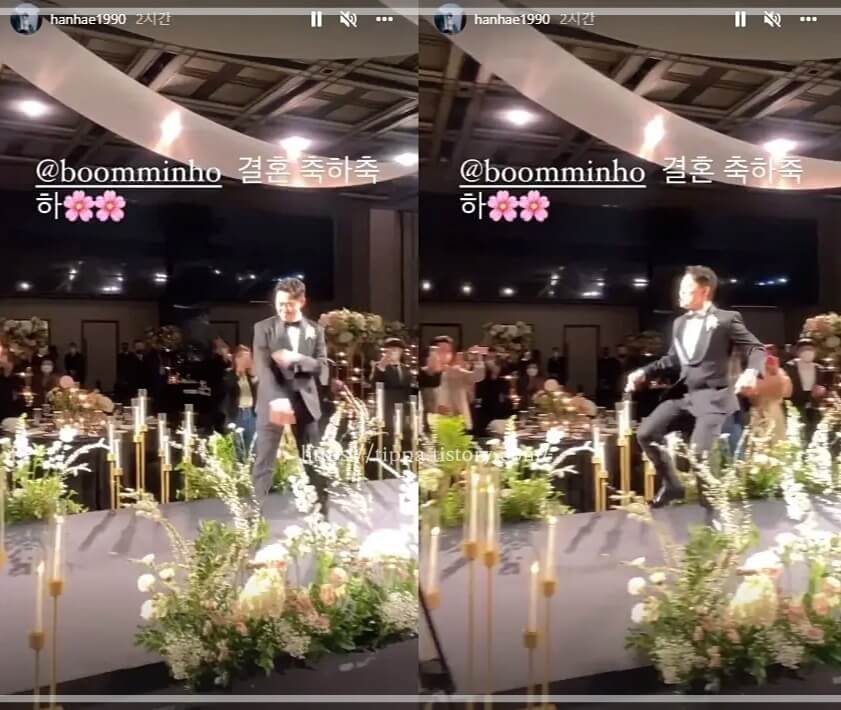 같은 날 결혼식 하객으로 참석한 한해는 인스타그램에 붐의 신랑입장 영상을 올렸는데, 영상에서 붐은 웨딩꽃길을 여유롭게 걸으며 주먹을 불끈 쥔 채 하객들에게 다가간 붐은 화려한 턴을 선보이며 하객들을 환호하게 하는등의 특유의 개그감을 뽐냈습니다.