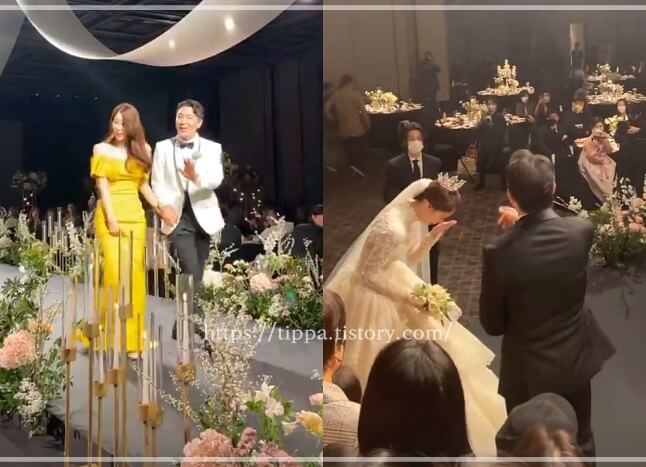이날 결혼식 주례는 개그계 대부 이경규가 맡아 눈길을 끌었다. 사회는 배우 이동욱, 축가는 임영웅, 이찬원, 나태주, 케이윌 등이 맡았습니다.