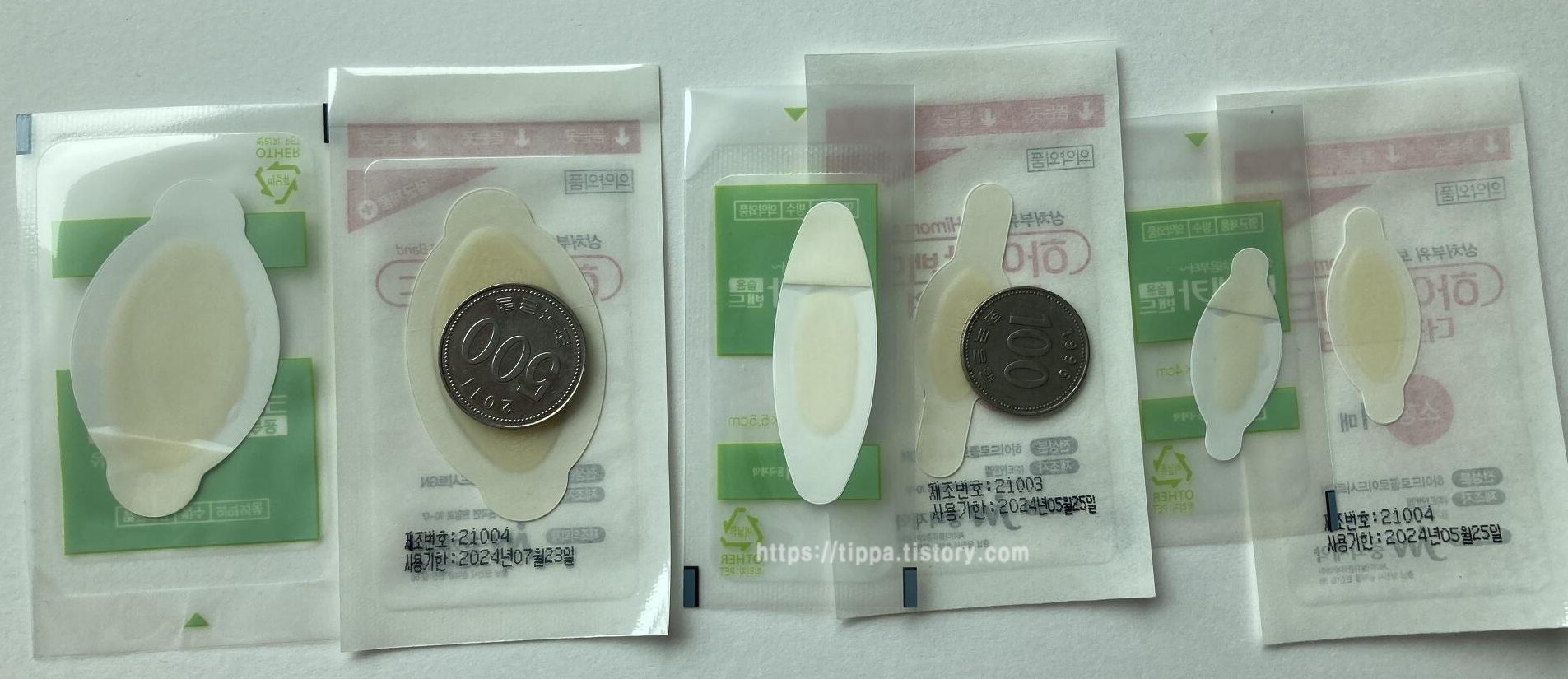 진물 없는 상처에 습윤밴드를 두꺼운 걸 붙이면 피부가 건조해지기 때문에 상처 부위에 따라 쓰기 위해 저는 두 가지다 구비해 뒀다가 상처에 맞게 쓰고 있어요.
