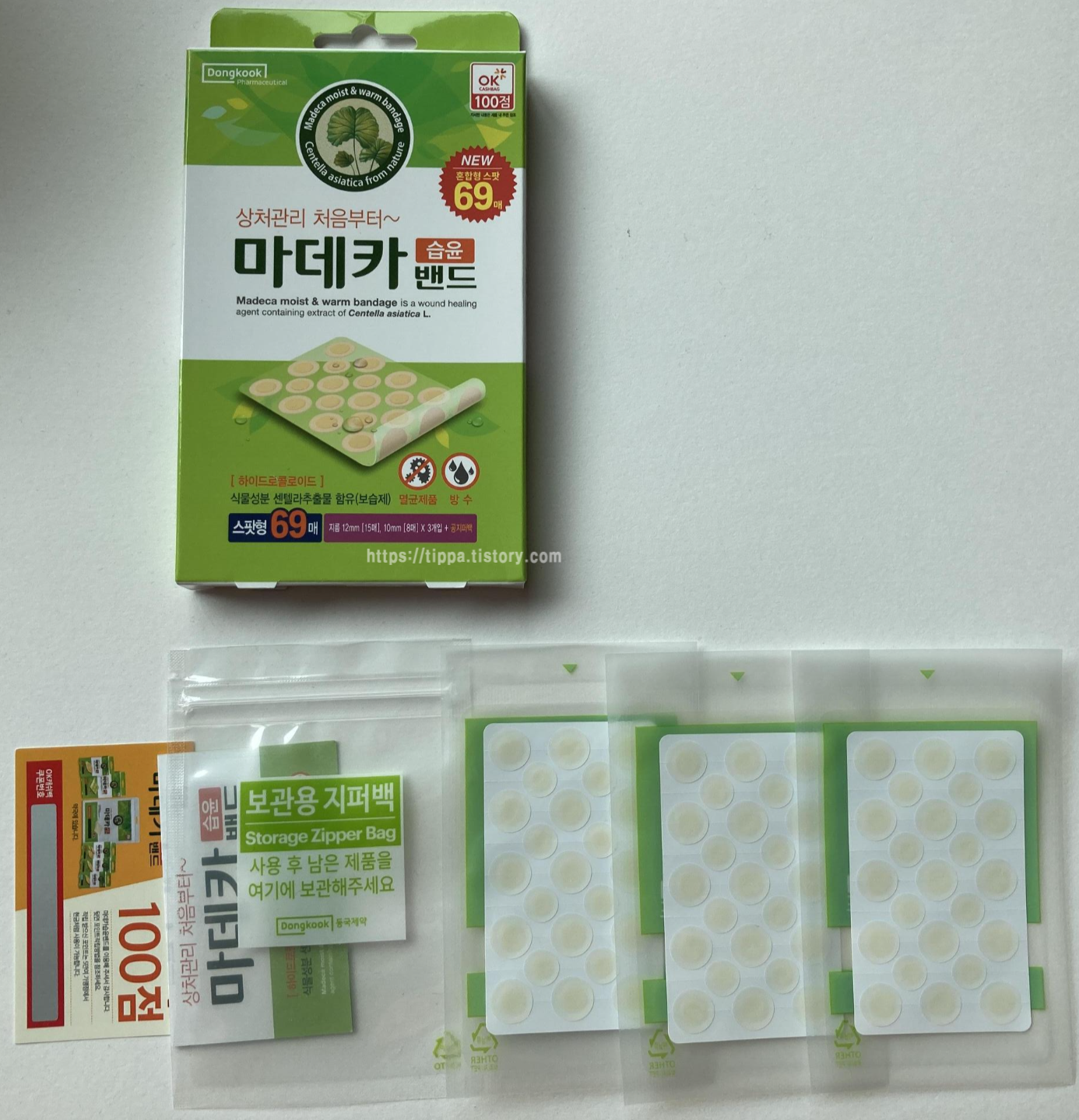 너무 저렴한 가격에 구매해서 매우 잘 쓰는 제품이고, 무려 69개나 되어 넉넉하고, 두 가지 사이즈로 되어있어 상처 크기에 따라 붙일 수 있어요.