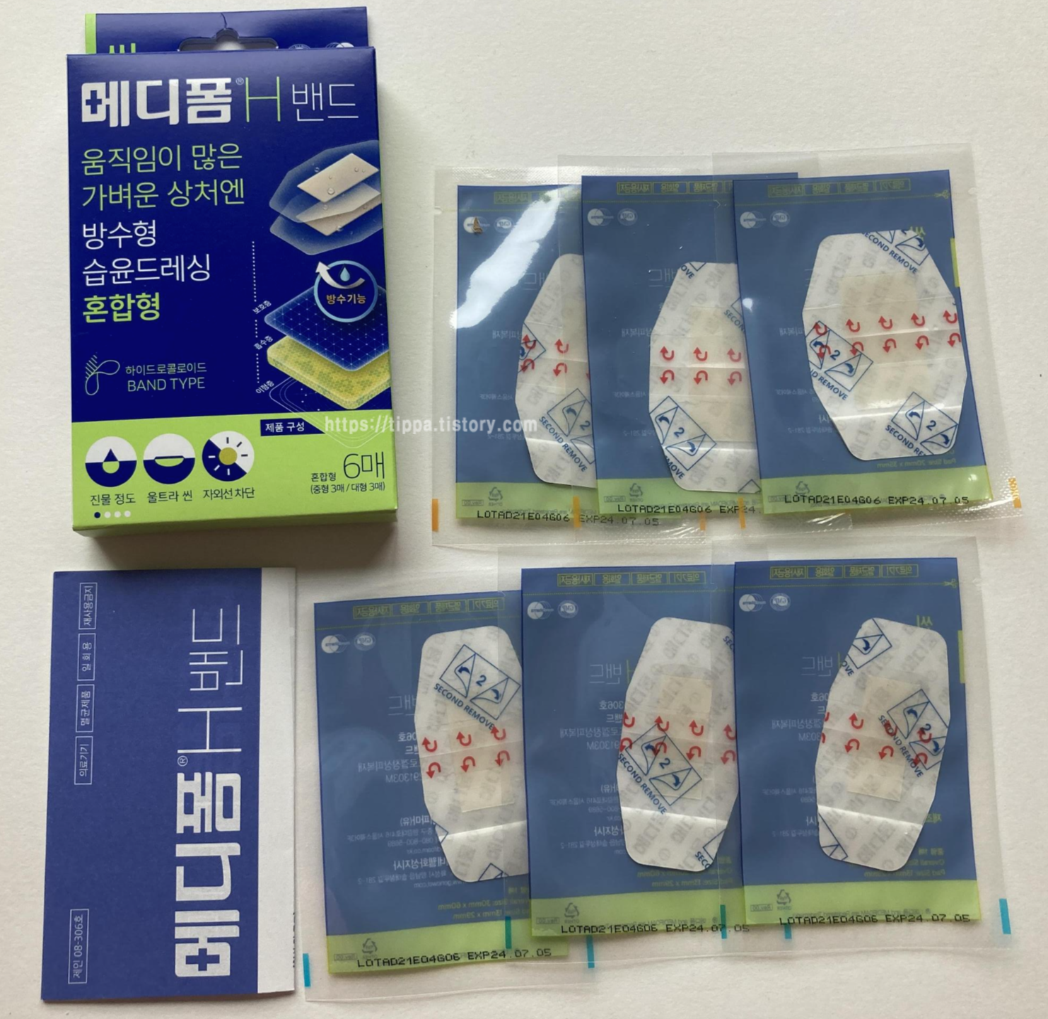 메디폼 H밴드는 가격이 좀 있는 편이지만 습윤밴드를 부착해주는 부분이 얇게 되어있고 손에 대지 않고 밀착해서 붙이게 되어있어 좋아요.