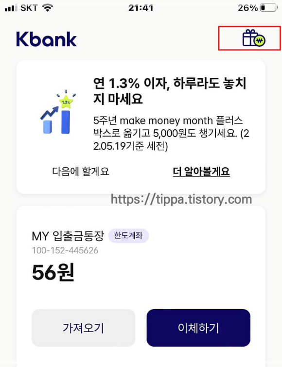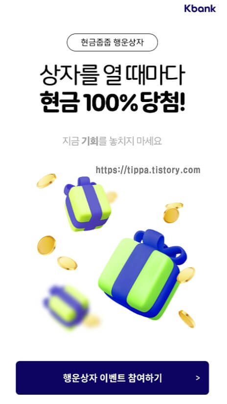 케이뱅크에서 선물상자 100개 이벤트를 하고 있어 공유해요~