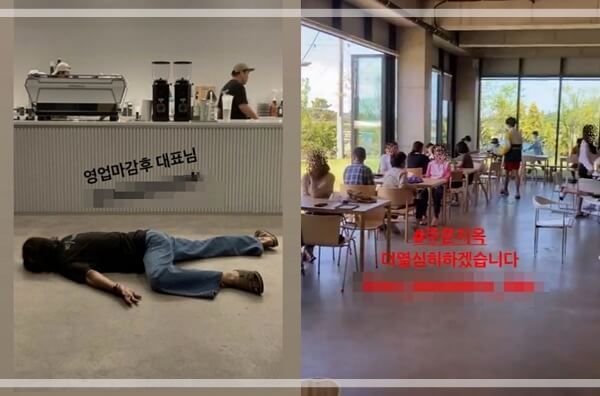 빽가는 해당 영상에 "오늘도 1, 2층 전석 풀 테이블 대단히 감사드립니다"라는 글을 남겼고, 카페 내부 영상에선 모든 테이블은 만석 상태로 손님들이 테이블에 앉아 있는 광경이 포착됐습니다.