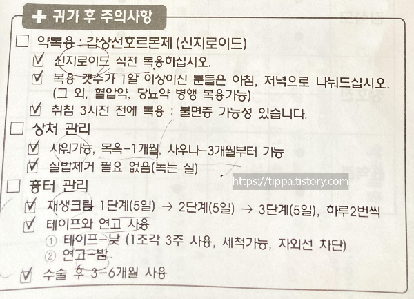 퇴원후 상처부위에 붙여진 테잎에 대한 설명을 듣고 입원비를 결제후 퇴원하는거 맞나? 싶을정도로 간단하게 퇴원하게 되요.