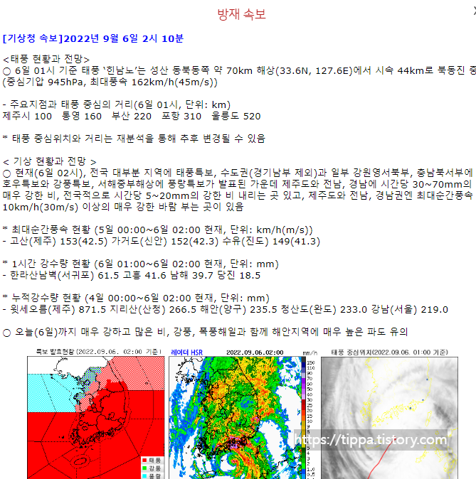 2022년 9월 6일 오전 2시 10분 기상청 방재 속보
