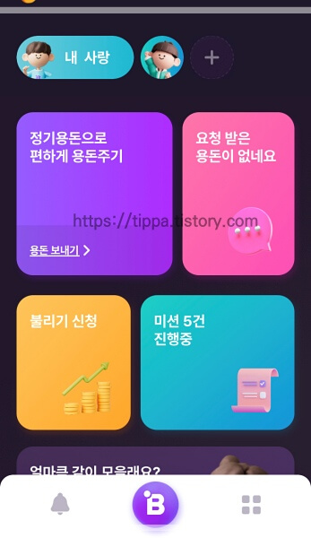 그리고 아래쪽에 보내기가 있고 미션 수행하기도 있는데 정해진 미션을 수행하면 아이에게 용돈을 보내줍니다.