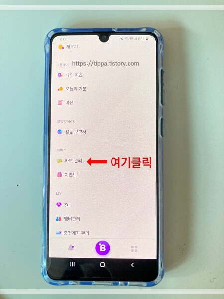 부모앱에서는 성인이라서 그런지 카드신청이 보이질 않네요.