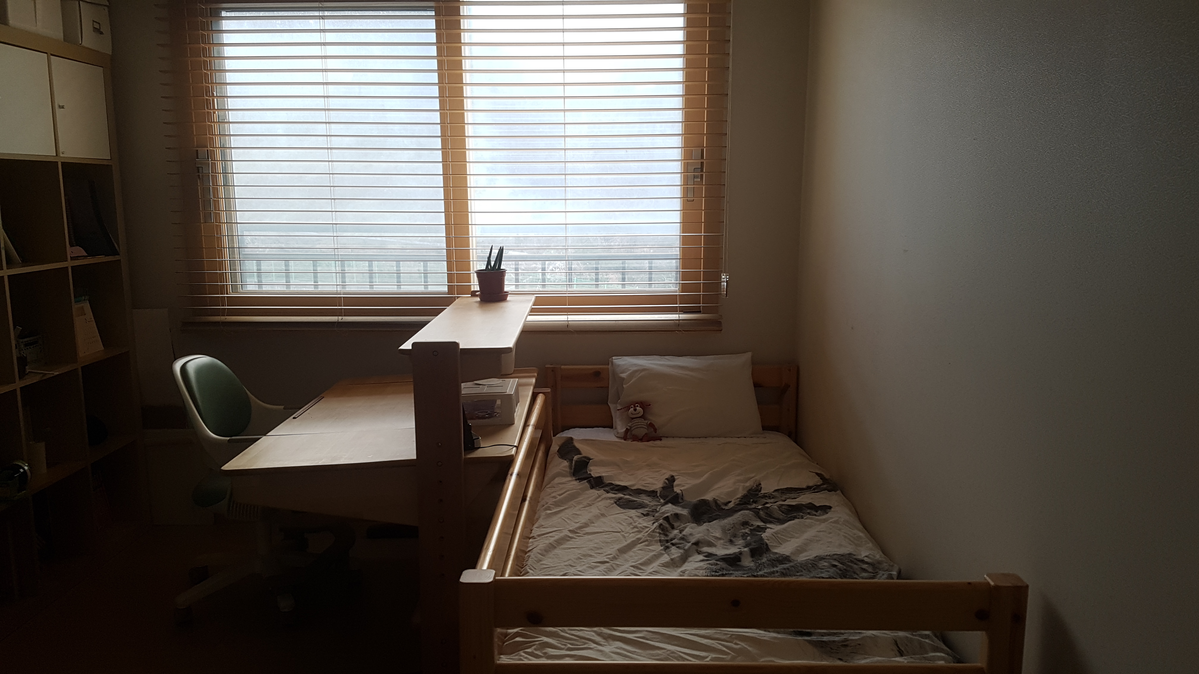 보통 때는 중간으로 놔둬요 사진이 상당히 어둡게 나왔지만 방도 환해 보여서 좋네요